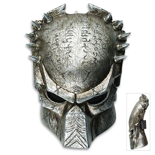 Be the Predator from your favorite action movie with this poly resin constructed full-facemask. Complete with Veclro straps in rear to hold it tightly to your head, this Predator mask can be worn, or displayed with your other movie memorabilia. Includes wall hanging hook. Highly realistic details mirror that of the actual mask worn in the movie. 11"" x 8"" overall.